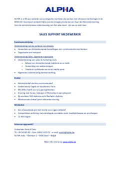 We zijn ook op zoek naar een SALES SUPPORT MEDEWERKER !